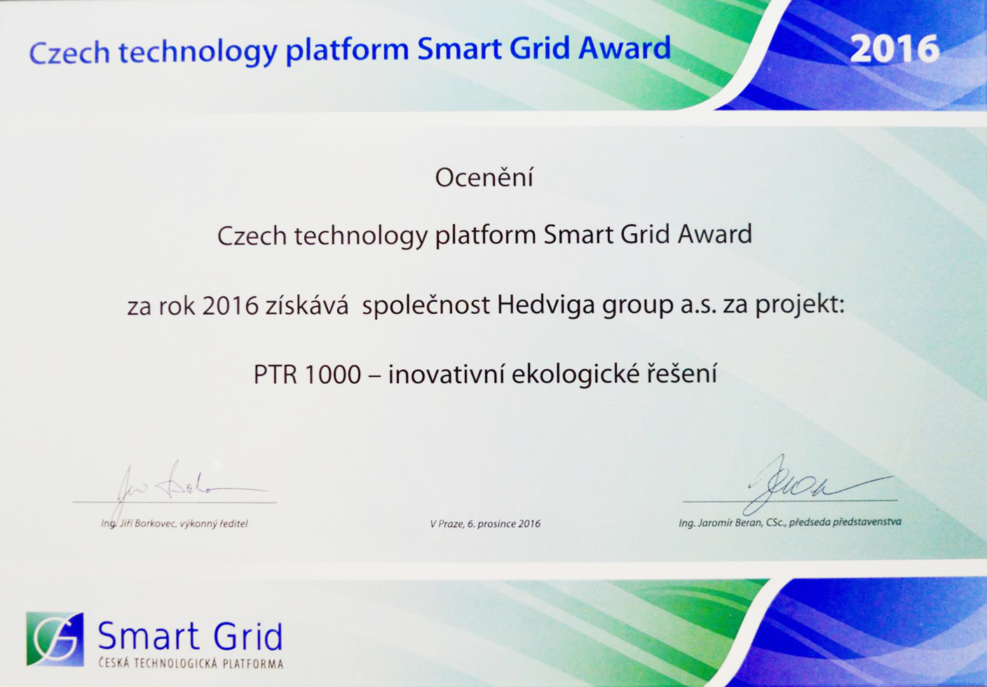 On Tuesday, 13th December 2016 was held in Prague a ceremonial meeting of company representatives and projects nominated for an award of the Czech technology platform Smart Grid Award, associated with a meeting with journalists.